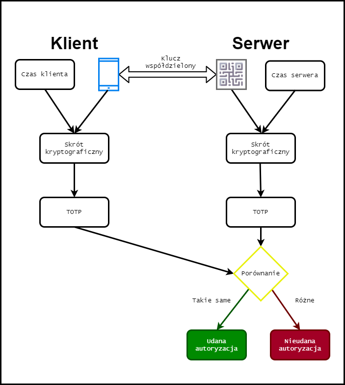 Jeśli serwer i klient zgadzają się co do czasu oraz posiadają ten sam klucz współdzielony, to ich wypadkowa (skrót kryptograficzny) będzie taka sama. Dzięki temu, urządzenia nie muszą być ze sobą bezpośrednio połączone, aby móc generować bezpieczne kody.