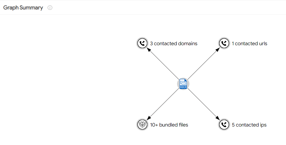 W badanym przez nas przypadku, szczególnie ciekawy jest wynik sekcji Relations, która między innymi w graficzny sposób prezentuje nam ukrytę zachowanie pobranego przez nas pliku .doc: