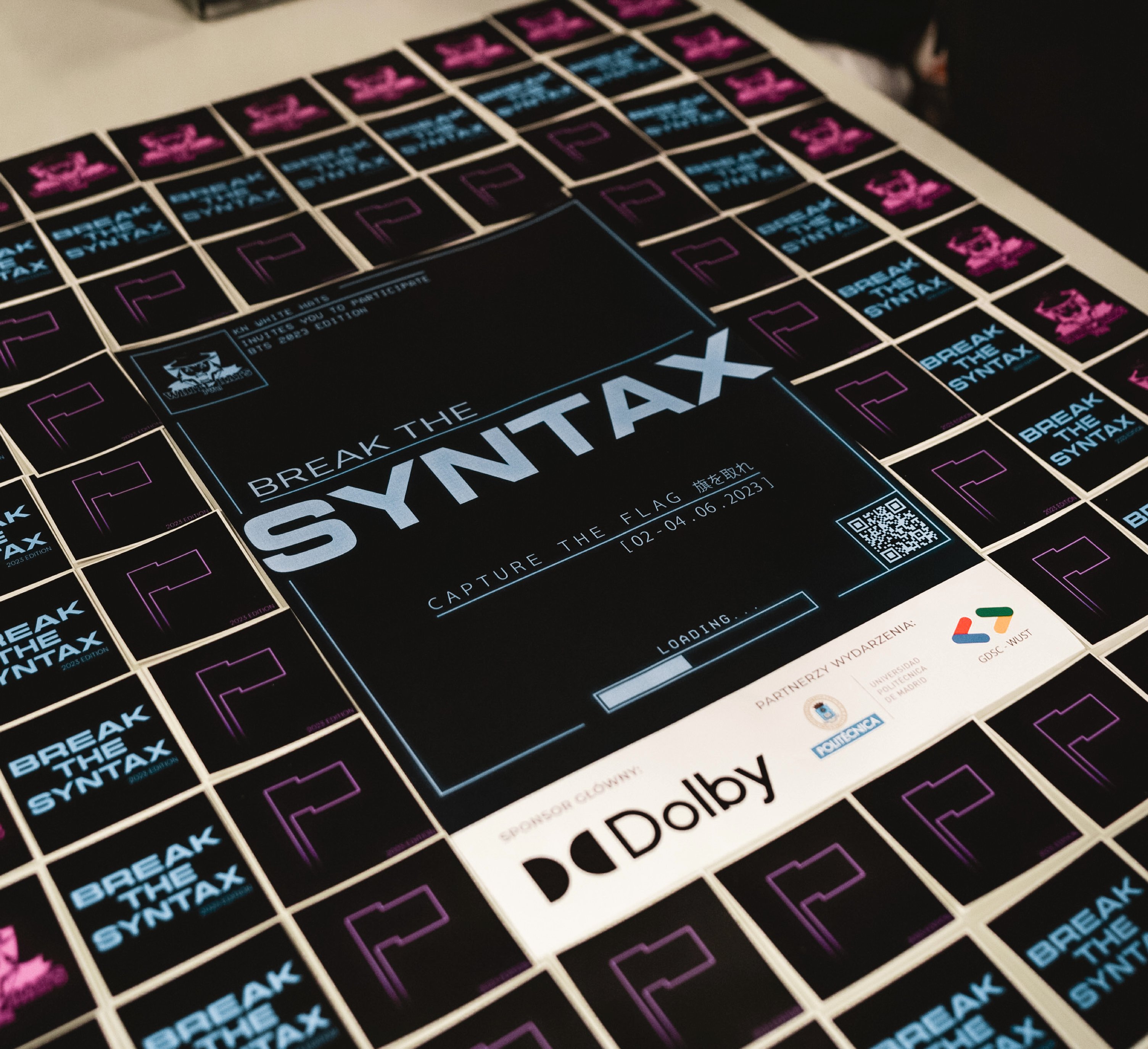 W tym roku turniej Break The Syntax odbył się w dniach 2-4.06, a sponsorem głównym wydarzenia została firma Dolby. W formie stacjonarnej wzięło udział ponad 40 drużyn, czyli ponad 80 osób, a na platformie CTFtime zgromadziliśmy 156 drużyn!