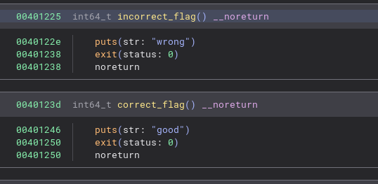 Analizę programu rozpoczynamy od sprawdzenia sekcji .rodata, gdzie znajdujemy dwa interesujące ciągi znaków: “wrong” oraz “good”.