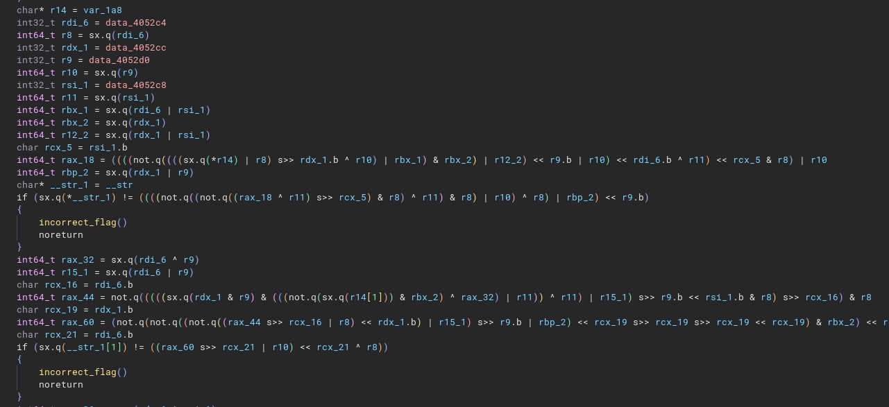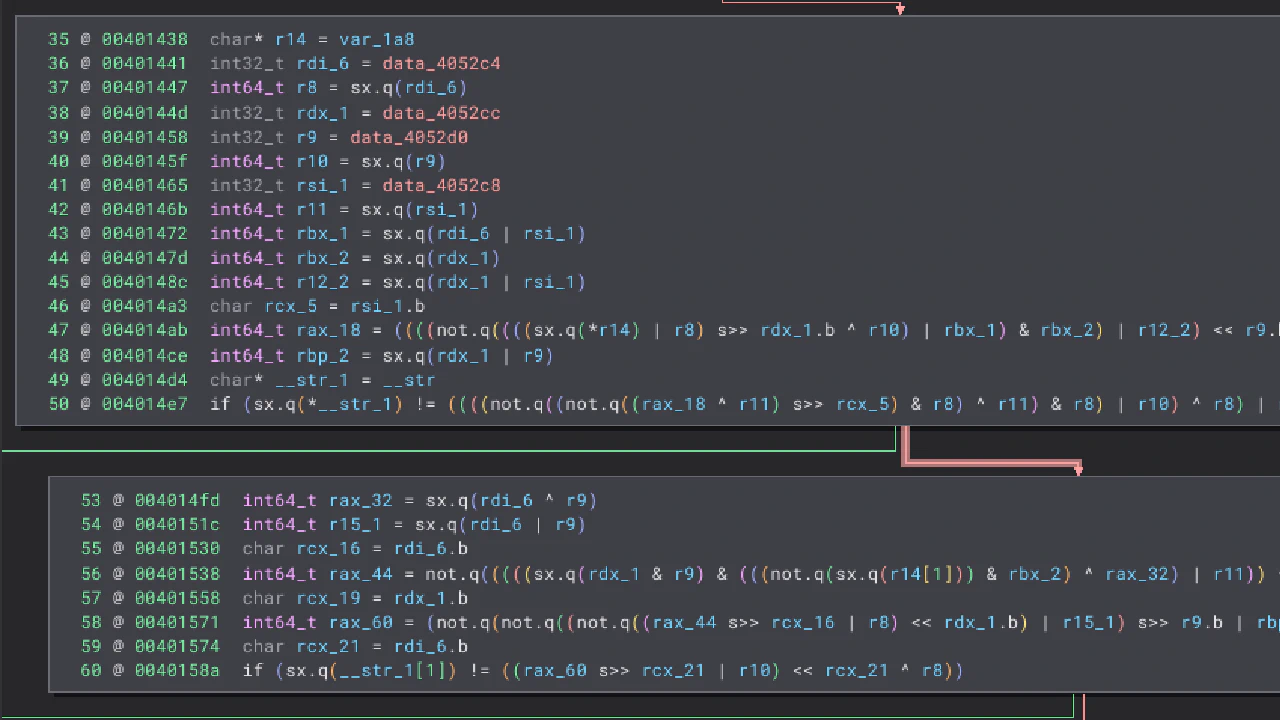 Dzięki wykorzystaniu Binary Ninja oraz jego funkcji User Informed Data Flow, zdołaliśmy zdeobfuskować program.