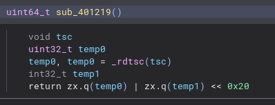 W poprzednio niewidocznej wcześniej części programu sprawdzany jest czas. Jeśli program byłby debugowany ustawione przez signal_handler wartości zmiennych zostały by nadpisane.